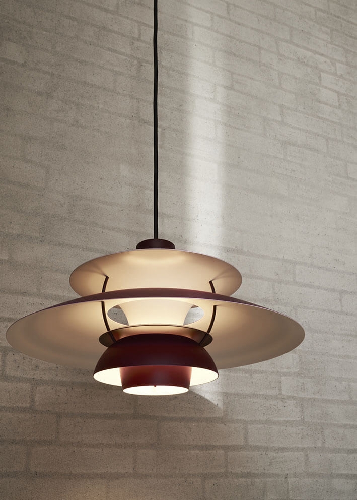 De PH 5 hanglamp is ontworpen op basis van Poul Henningsens iconische drievoudige schermsysteem uit 1926, dat zorgt voor een fantastische verblindingsvrije lichtverdeling.