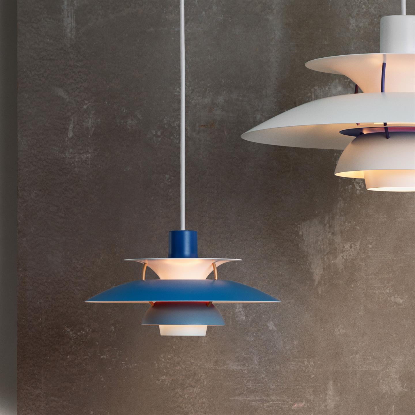 De PH 5 lamp is ontworpen op basis van Poul Henningsens iconische drievoudige schermsysteem uit 1925, dat zorgt voor een fantastische verblindingsvrije lichtverdeling.