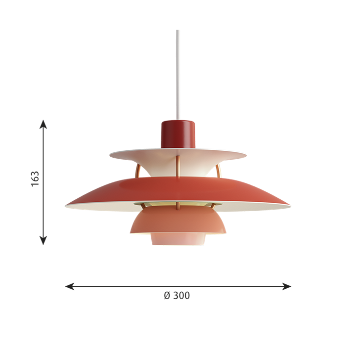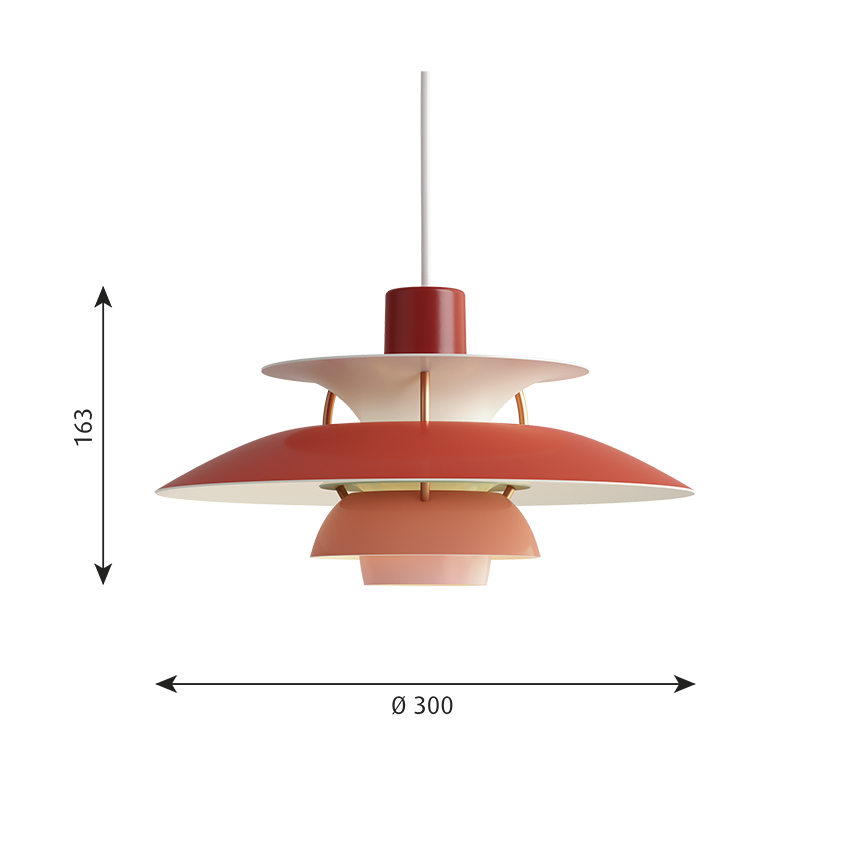 Louis Poulsen PH 5 Mini hanglamp, hues of red - ontworpen door Poul Henningsen.