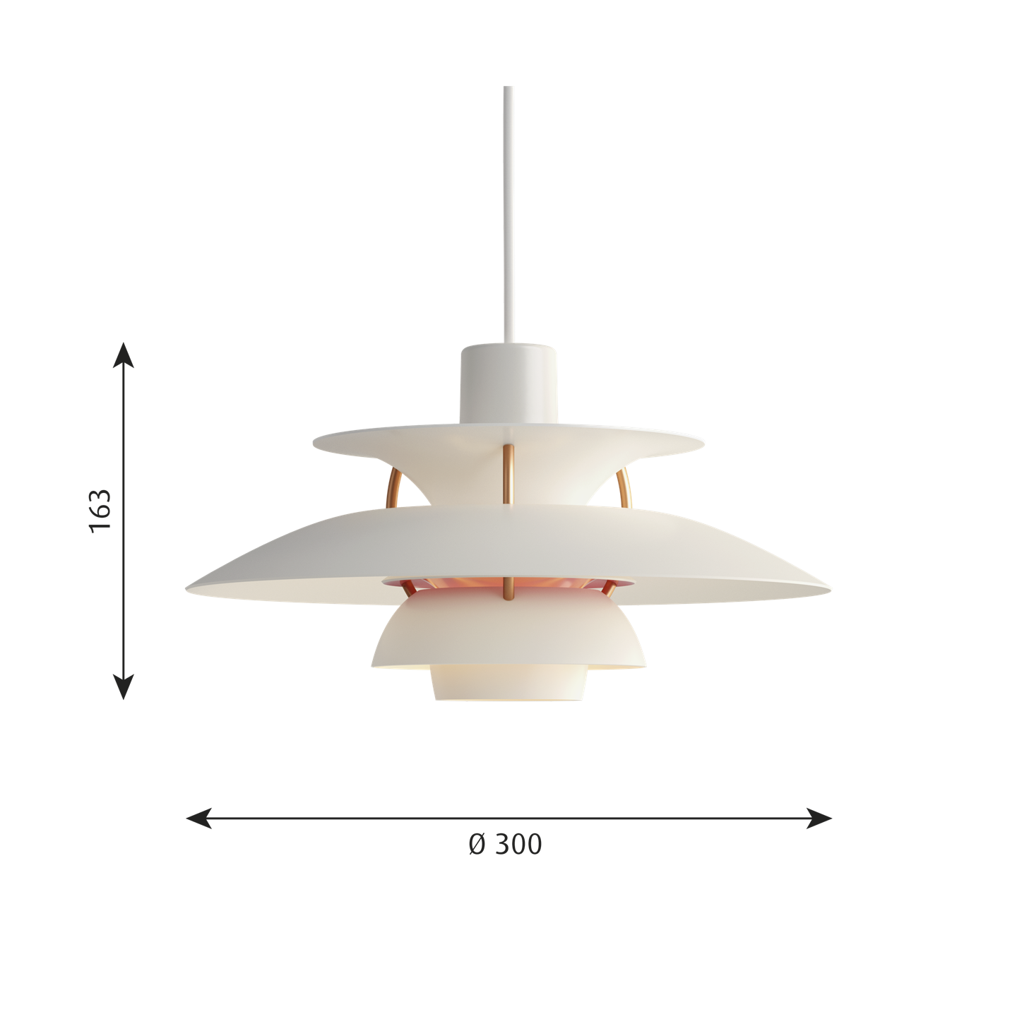 De unieke hanglamp is ongelooflijk veelzijdig en past zowel in klassieke als moderne interieurs. Deze kleinere versie van de originele PH 5 is in overeenstemming met het oorspronkelijke unieke ontwerp.