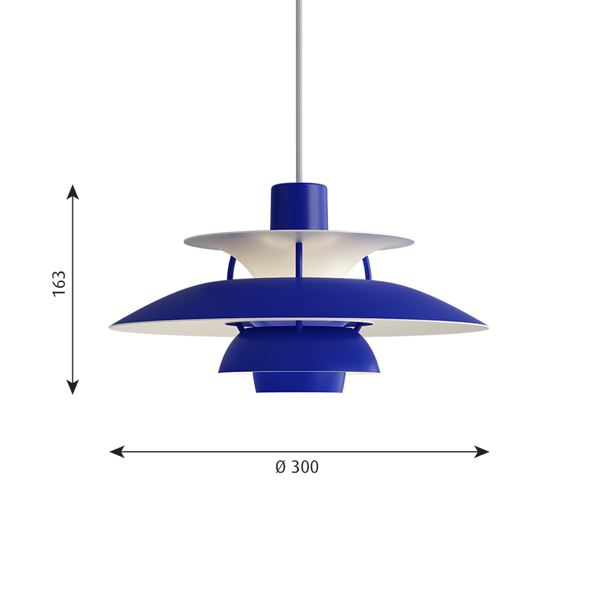De unieke hanglamp is ongelooflijk veelzijdig en past zowel in klassieke als moderne interieurs. Deze kleinere versie van de originele PH 5 is in overeenstemming met het oorspronkelijke unieke ontwerp. De bovenste kap van de PH 5 Mini heeft een diameter van ongeveer 30 cm.