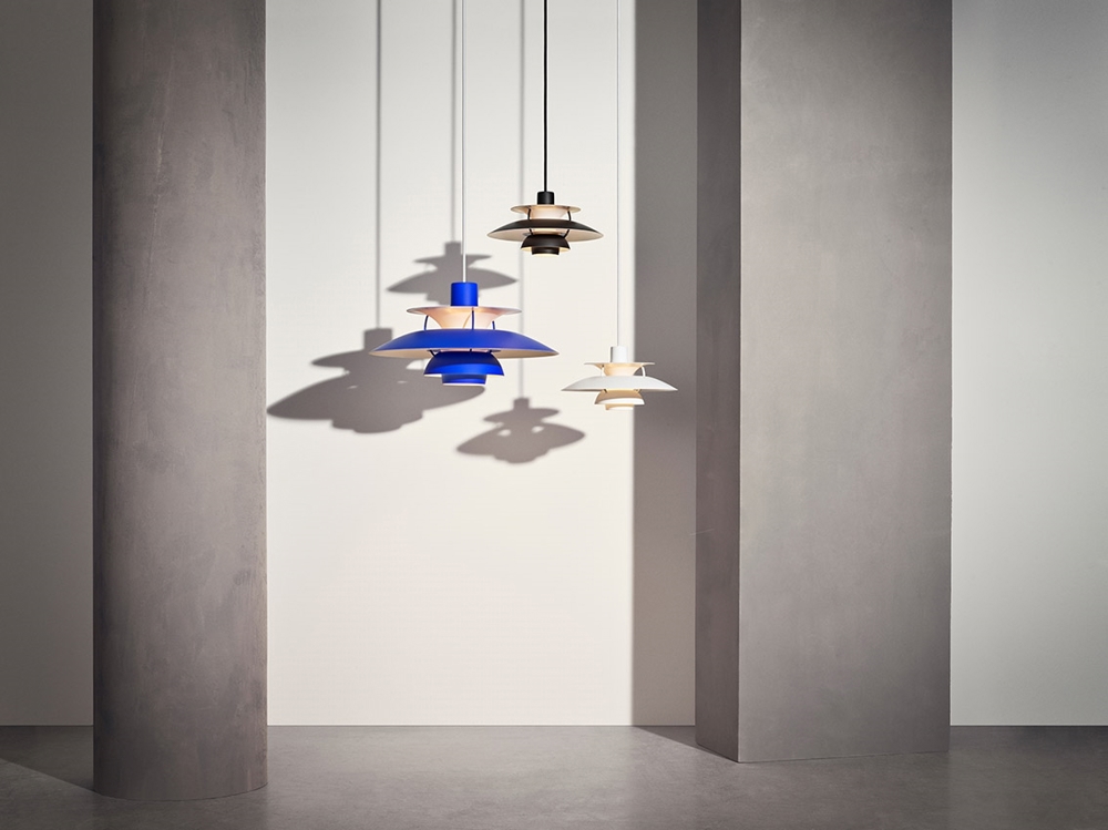 Louis Poulsen PH 5 Mini hanglamp, monochroom blauw - ontworpen door Poul Henningsen.