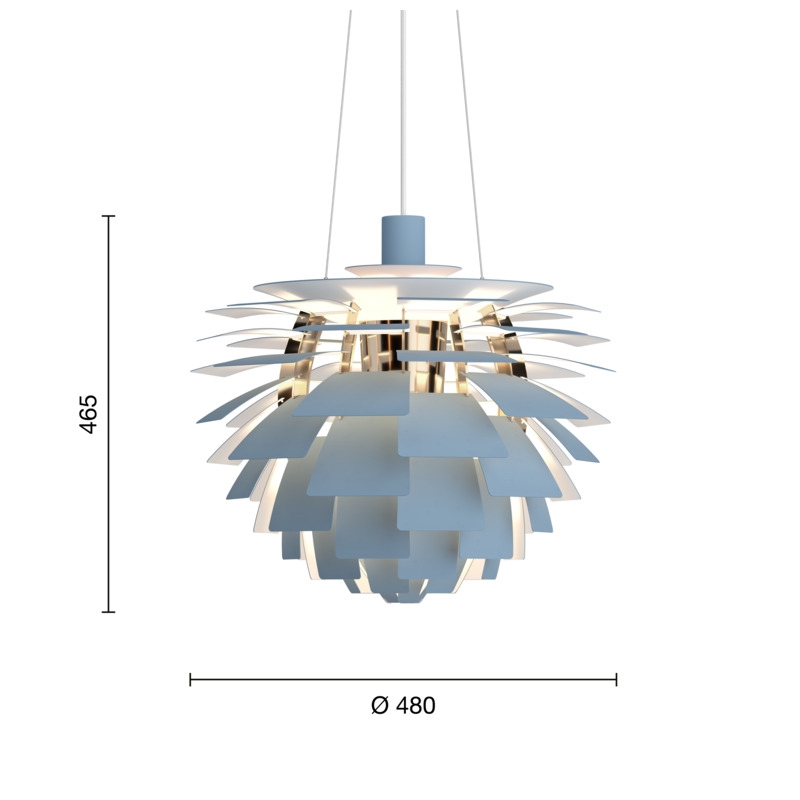 Ongeacht vanuit welke hoek je naar de unieke PH Artichoke hanglamp kijkt, geeft deze een aangenaam verblindingsvrij licht. Dit komt door de 72 metalen bladen die 12 precieze rijen van zes bladen vormen.