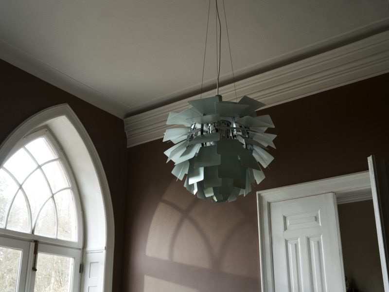 De unieke hanglamp reflecteert het licht zowel naar binnen als naar buiten, wat bijdraagt aan de fantastische lichtuitstraling. De bladen van de PH Artichoke in dusty green/chroom zijn gemaakt van lasersnijstaal en hebben een zachte, vervaagde en stoffige groene kleur met grijze ondertonen, die doen denken aan loof of verweerde steen. De bovenkap is van getrokken staal, het frame is van hoogglans verchroomd staal en de ophanging is van getrokken aluminium.