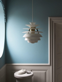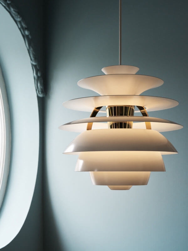 De unieke PH Snowball hanglamp biedt een zacht, harmonieus en verblindingsvrij licht, waarbij de onderste schermen het licht vasthouden in contrast met de bovenste die het licht zowel naar boven als naar beneden verspreiden. Dit geeft een prachtige gloed rondom de lamp.