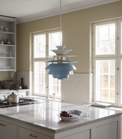 De unieke PH Snowball hanglamp biedt een zacht, harmonieus en verblindingsvrij licht, waarbij de onderste schermen het licht vasthouden in contrast met de bovenste die het licht zowel naar boven als naar beneden verspreiden. Dit geeft een prachtige gloed rondom de lamp.