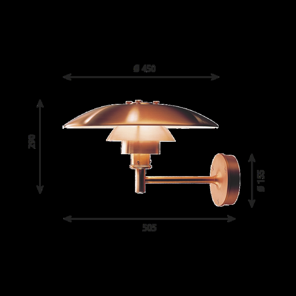 Louis Poulsen PH wandlamp, geborsteld koper zonder zijgaten - ontworpen door Poul Henningsen.