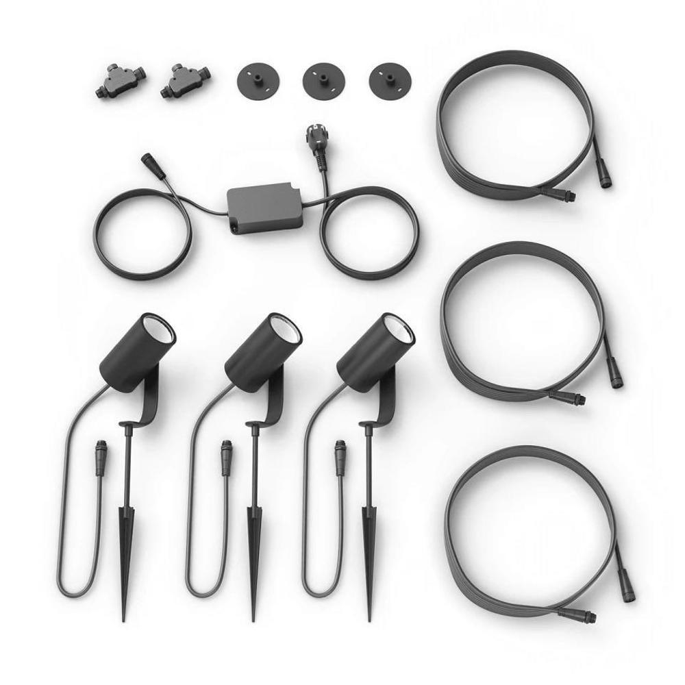 Philips Hue Lily White and Color Ambiance buiten spike spot basissset, zwart (3 stuks).