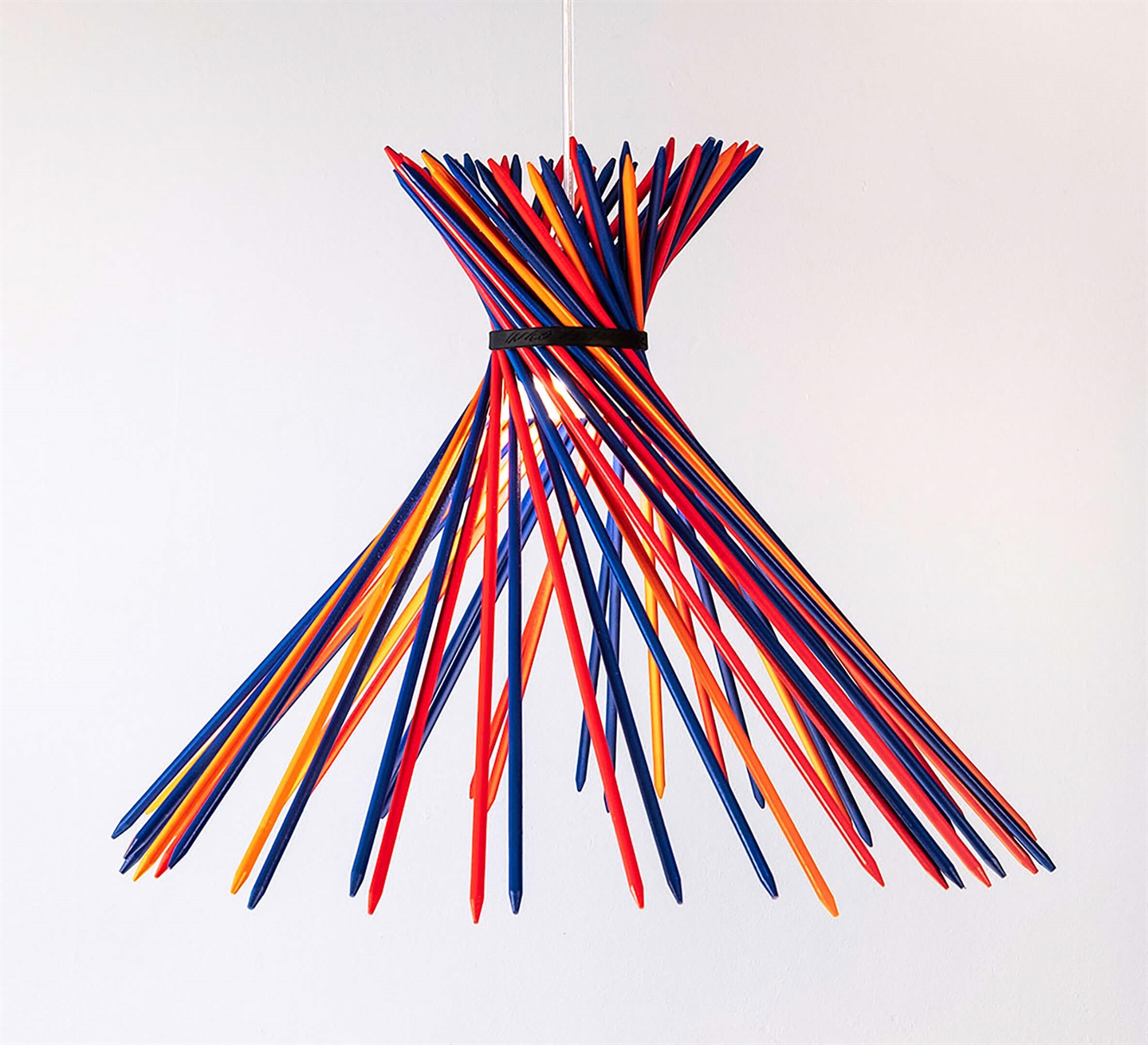 De unieke Pic-a-stick hanglamp bestaat uit 50 gelakte houten stokken en een rubberen ring die de stokken in de lucht bij elkaar houdt. Het unieke ontwerp is geïnspireerd op het spel "Mikado". Ontwerper Andreas Walther wilde een hanglamp creëren die het effect nabootst dat ontstaat wanneer je de verschillende stokken in het spel "Mikado" gooit.