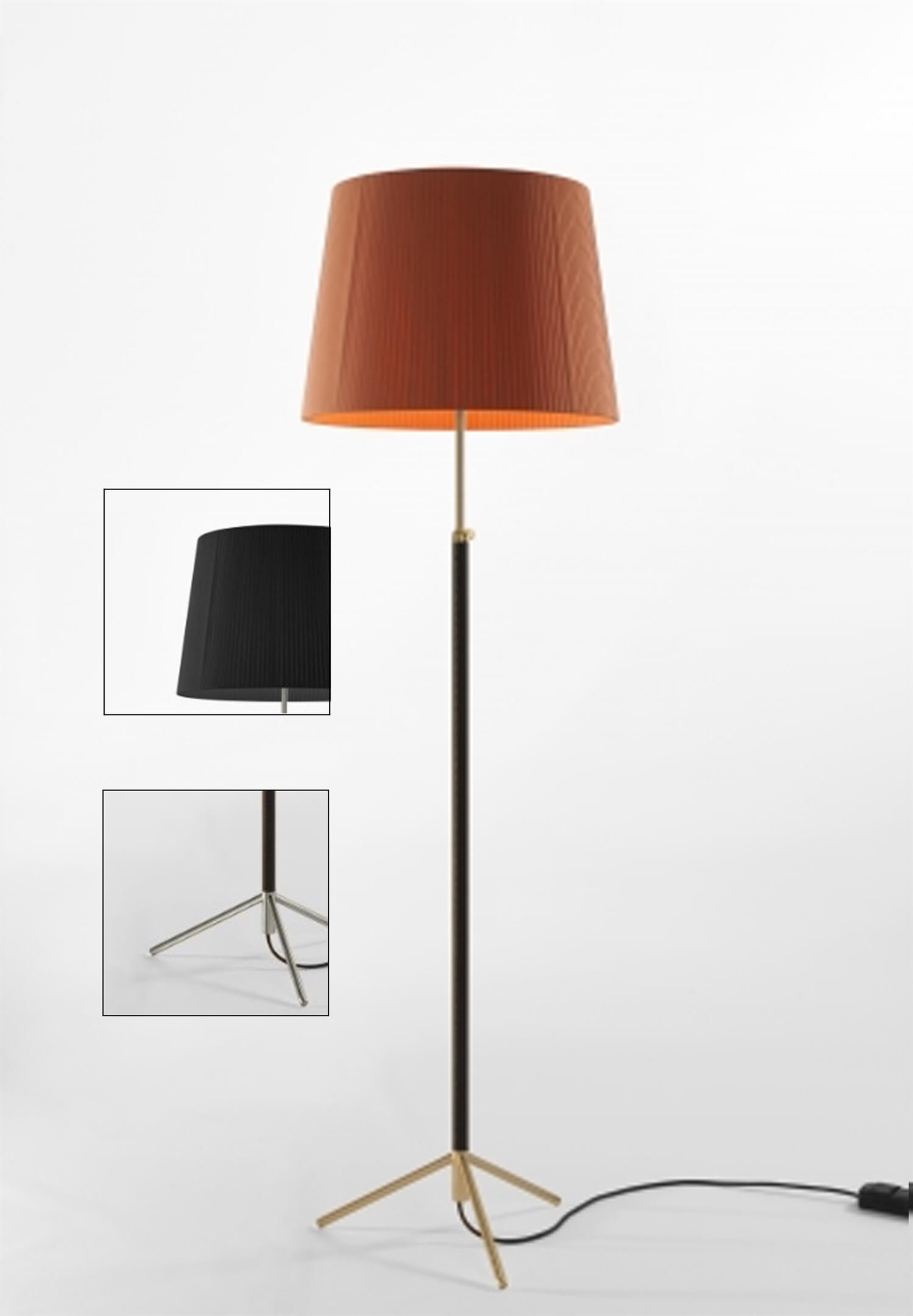 Pie de salón vloerlamp is gemaakt met de focus dat Jaume Sans ze in zijn eigen interieur kon gebruiken. Verstelbare lamp, met een zwart lederen schacht die het ontwerp iets luxueuzer maakt. Pie de salón lamp is verkrijgbaar in 3 verschillende modellen; G1, G2 en G3. 2 verschillende bases; Messing en chroom, en is gemaakt in een scala aan verschillende mooie kapkleuren.