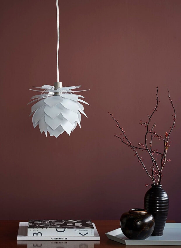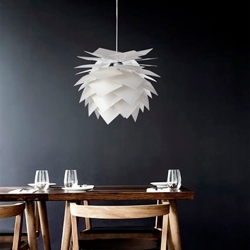 De Pineapple hanglamp is een zeer klassieke eetkamerlamp, die een centrale en populaire lamp is voor Dyberg Larsen. De lamp is prachtig en geeft een mooi effect met de overlappende lampenkappen, die een diffuus zacht licht geven. De hanglamp siert de eetkamertafel en past in veel interieurs.
