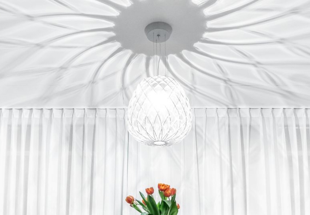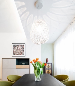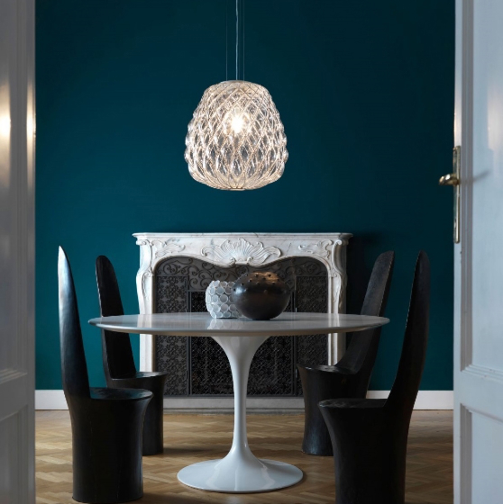 FontanaArte Pinecone hanglamp is een ongelooflijk mooie hanglamp, zowel wanneer deze aan als uit is. De hanglamp is uiterst decoratief en kan op verschillende plaatsen in huis worden geplaatst.