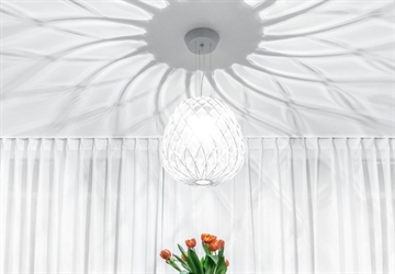 FontanaArte Pinecone hanglamp is een ongelooflijk mooie hanglamp, zowel wanneer deze aan als uit is. De hanglamp is uiterst decoratief en kan op verschillende plekken in huis worden geplaatst.
