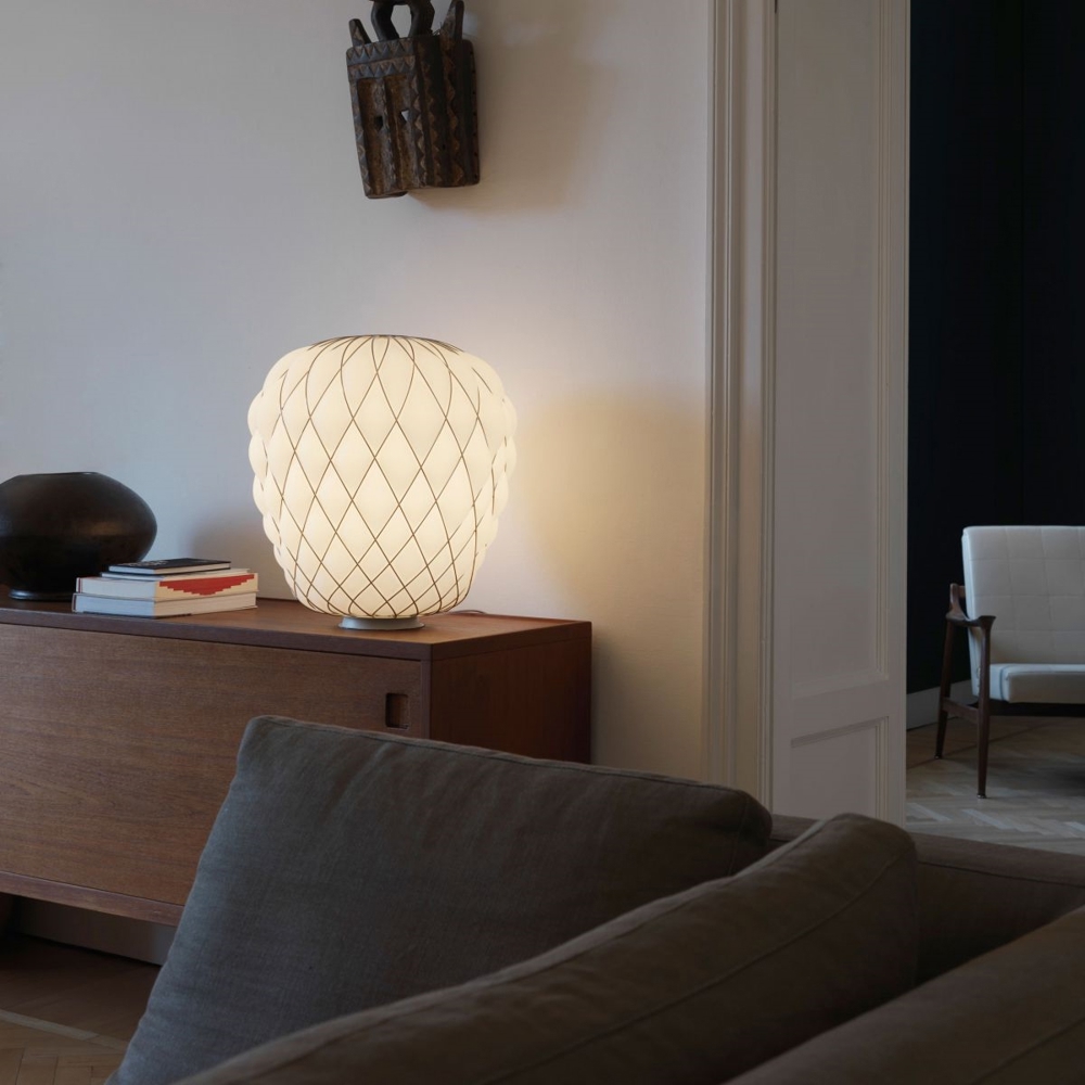 FontanaArte Pinecone tafellamp is een ongelooflijk mooie tafellamp, zowel wanneer deze aan als uit is. De tafellamp is uiterst decoratief en kan op verschillende plaatsen in huis worden geplaatst.