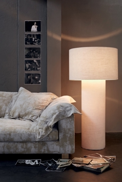 De vorm van de Pipe vloerlamp is geïnspireerd op buizen uit fabrieken, maar om een ruwe en tegelijkertijd elegante touch te geven, is de lamp bedekt met prachtige stof in verschillende kleuren.