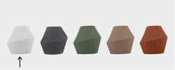 Pleat heeft een licht en klassiek design en is verkrijgbaar als zowel hanglamp als vloerlamp met kappen in twee verschillende maten en vijf verschillende kleuren - off white, antraciet, deep green/groen, sand taupe en cinnamon brown/bruin.