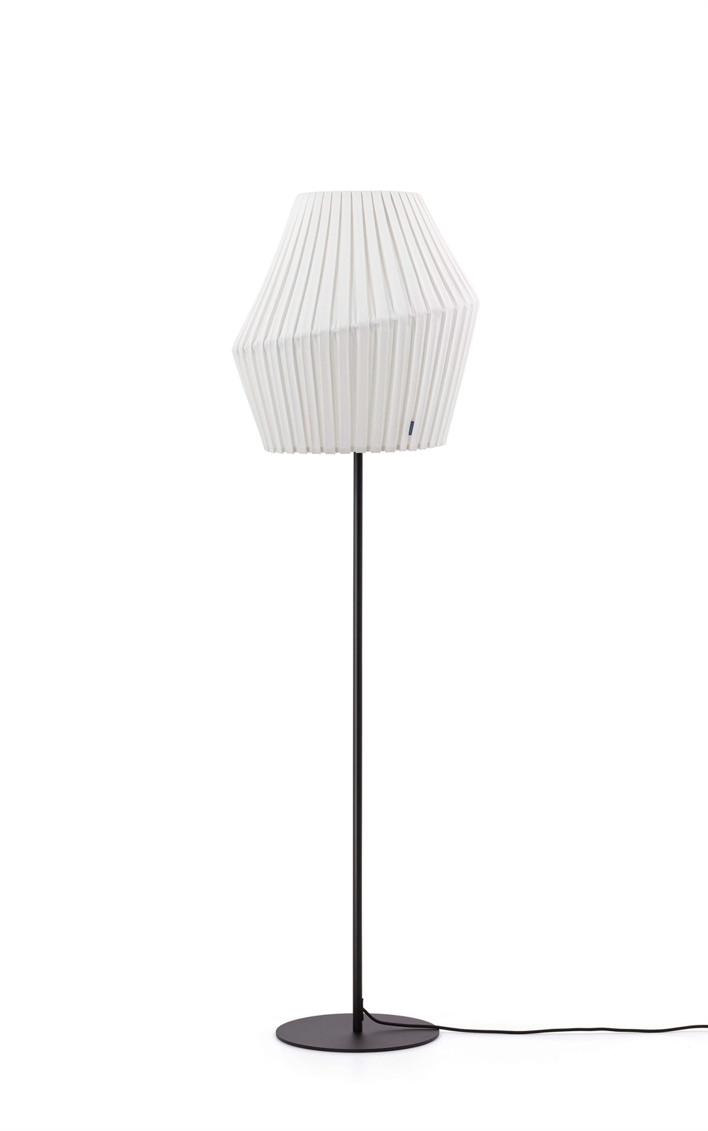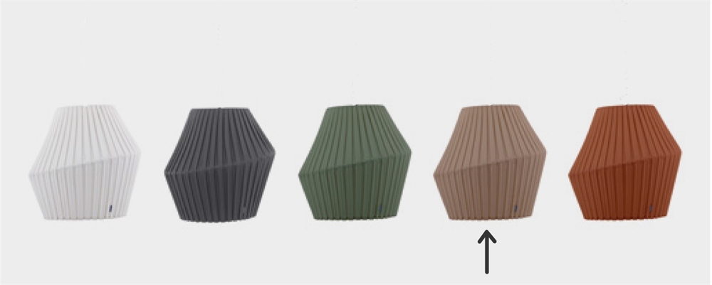 Pleat heeft een licht en klassiek design en is verkrijgbaar als zowel hanglamp als vloerlamp met kappen in twee verschillende maten en vijf verschillende kleuren - off white, antraciet, deep green/groen, zand taupe en cinnamon brown/bruin.