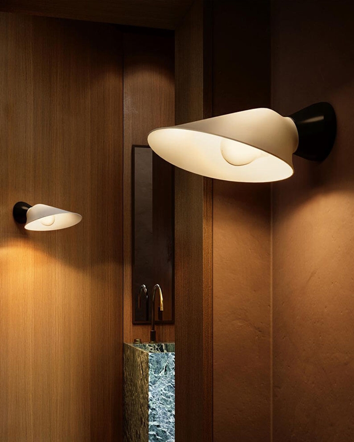 Plume Bath wandlamp heeft een delicaat ontwerp met zachte lijnen. De lampenkap richt het licht naar beneden, terwijl het tegelijkertijd veel licht in de ruimte verspreidt.