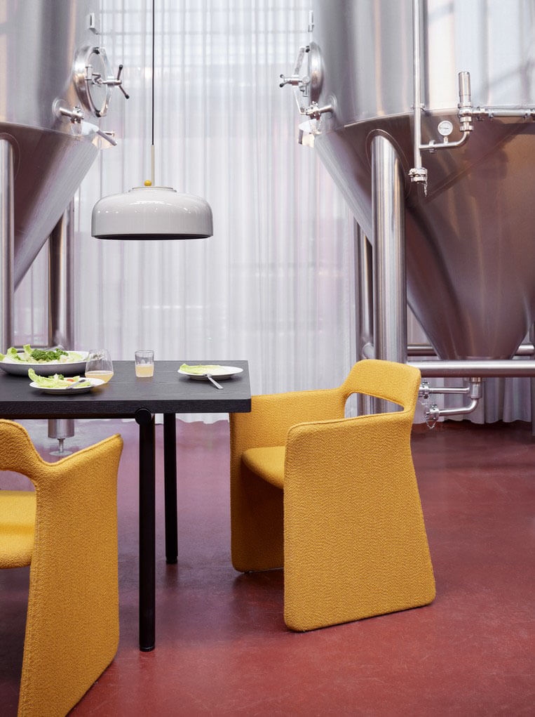 Please wait to be seated Podgy hanglamp, asgrijs met kurkuma gele dimmer - ontworpen door Krøyer-Sætter-Lassen