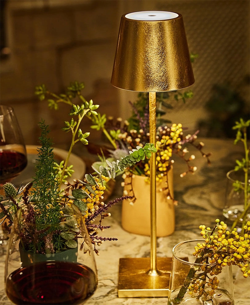 Zafferano Poldina Pro batterijlamp/tafellamp, antiek goud