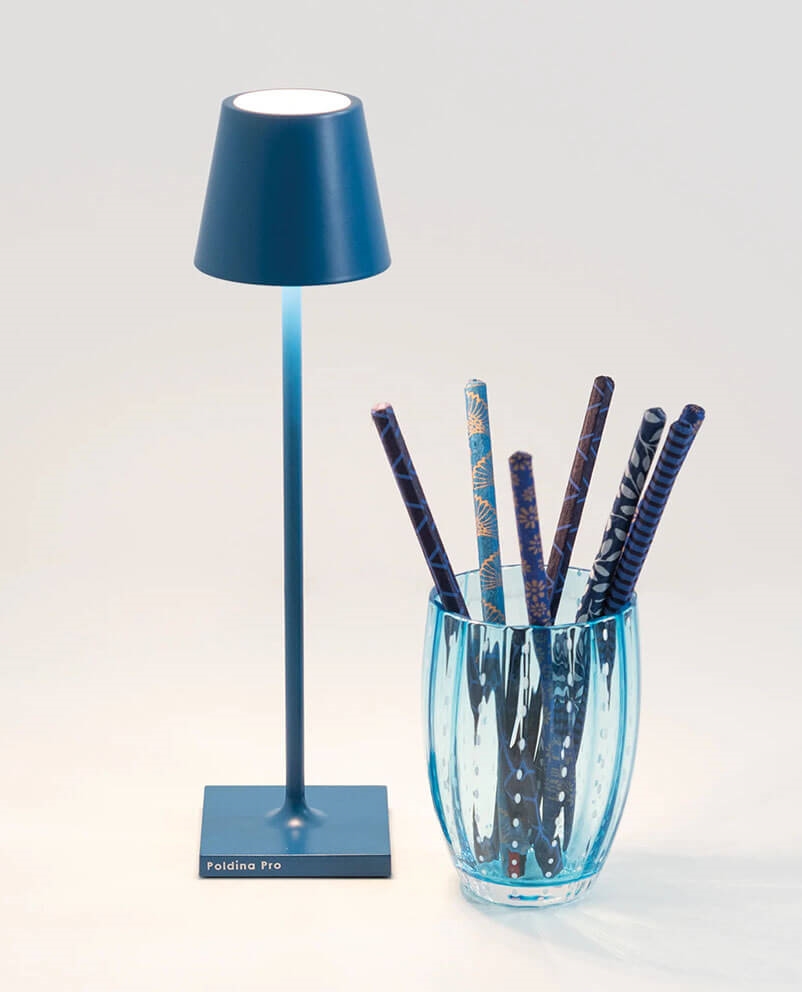 Zafferano Poldina Pro micro batterijlamp/tafellamp, capriblauw