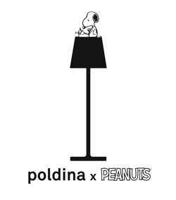 Poldina x Peanuts zijn speciale edities van de populaire draagbare tafellamp Poldina met de iconische personages uit de strip Peanuts. Deze variant met witte basis heeft Snoopy en verspreidt zowel licht als vreugde voor jong en oud.