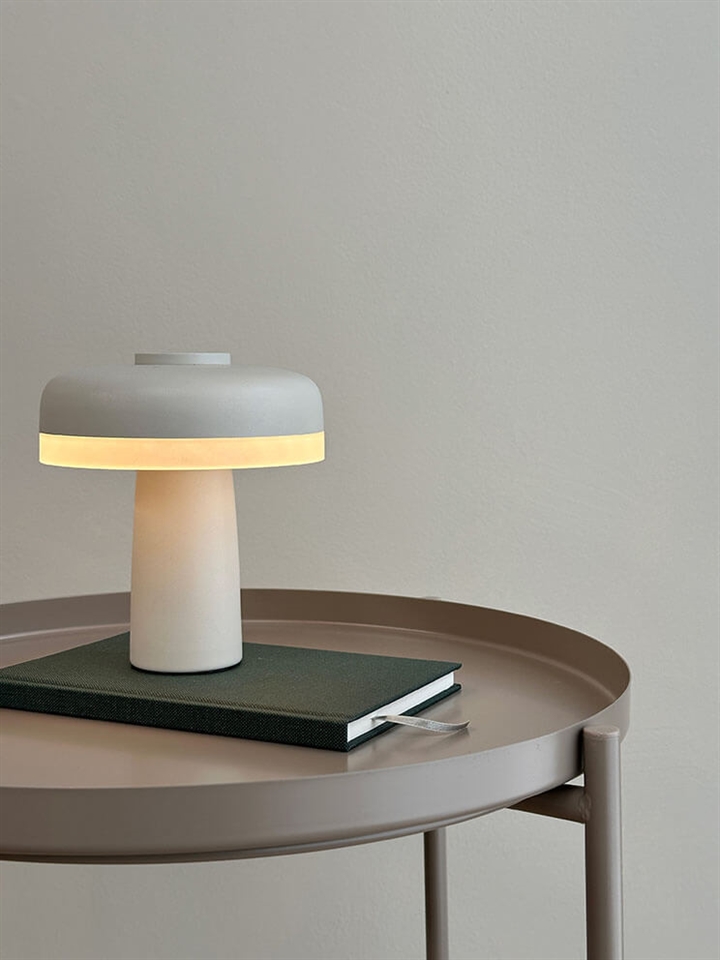 De oplaadbare tafellamp Porter heeft een uniek en modern design dat perfect past op het bureau, nachtkastje of plank in de woonkamer. Het aangename licht verspreidt zich gelijkmatig in de ruimte vanaf de rand van de lampenkap en kan in drie stappen worden gedimd. De batterijlamp is gemakkelijk mee te nemen, zodat je overal sfeervolle verlichting kunt hebben. Opladen gebeurt via de meegeleverde USB-kabel.