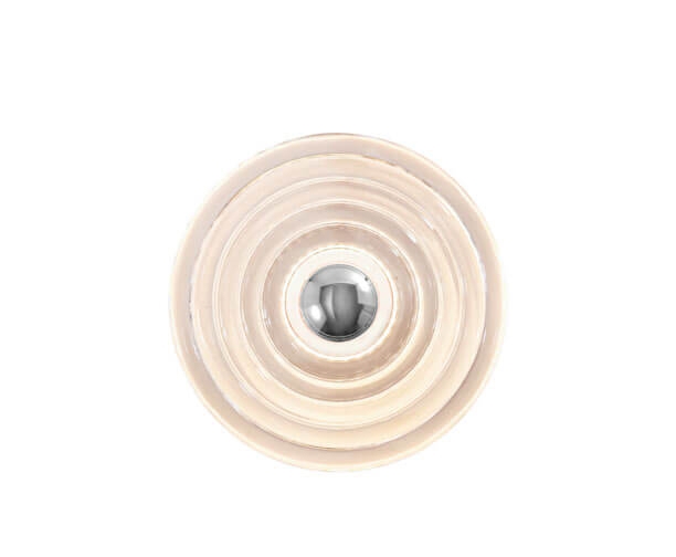 De wandlamp Press Surface mini is gemaakt van dik geperst glas en kan dankzij de IP55-classificatie zowel binnen als buiten worden gebruikt. Press is ontworpen om eeuwig mee te gaan en breekt en verspreidt het licht in lineaire en gestreepte patronen met het geribbelde glas van de kap. De metalen kap van de Press wandlamp kan worden verwisseld en wordt geleverd met kappen in zilver, goud en zwart.