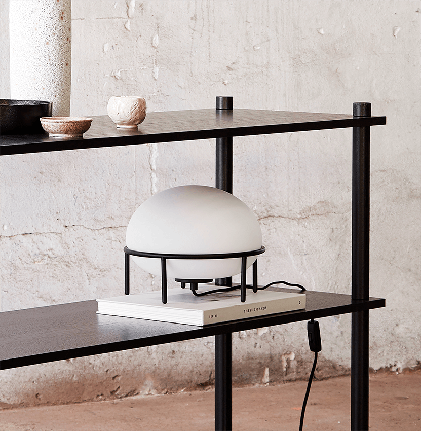 Woud Pump tafellamp, opaal/zwart – ontworpen door Kutarq Studio