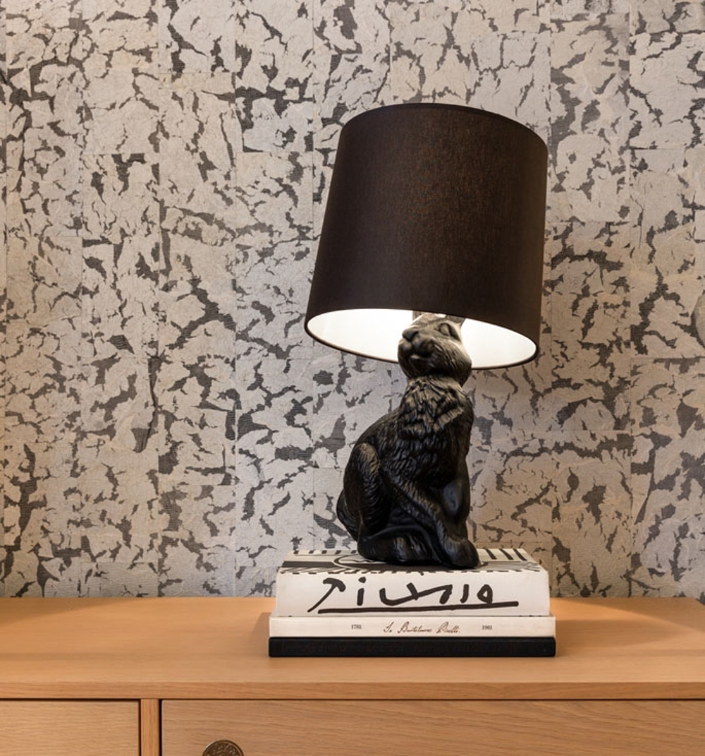 Wanneer de exclusieve Rabbit lamp wordt ingeschakeld, reflecteert het licht prachtig over de vacht van het konijn, wat een gezellige sfeer in de ruimte creëert.
