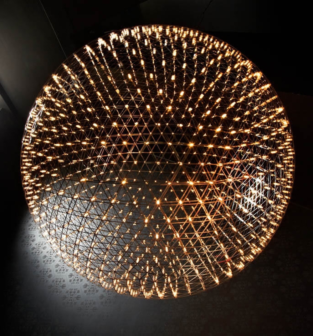 Moooi hanglamp is een elegante bol, opgebouwd uit slanke metalen banden die de stroom geleiden naar de vele LED lichtbronnen, die in alle verbindingen van de metalen banden zijn geplaatst. De honderden lichtbronnen maken de lamp tot een prachtige, sprankelende lichtbol, maar toch is het licht van de lamp verfijnd en zacht en zal het een ruimte niet domineren.