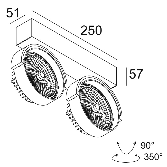 De lampkop is 350° draaibaar. De lichtbronnen zijn 90° kantelbaar.