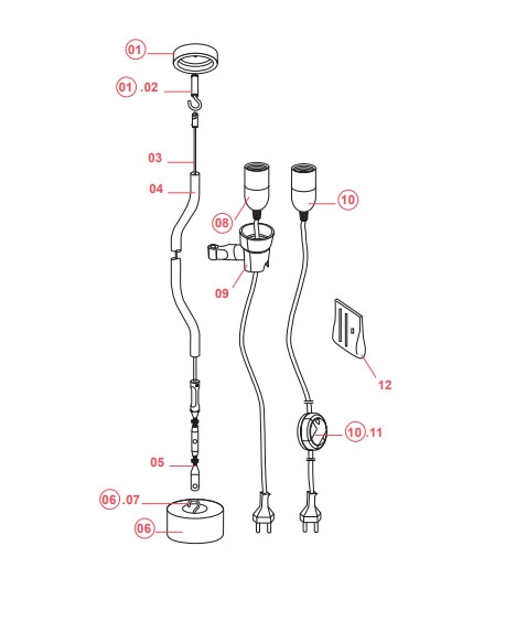 Reserveonderdeel: Plafondrozet met haak voor Flos Parentesi vloer-tot-plafond lamp. (Deel 01 + 02 op tekening)