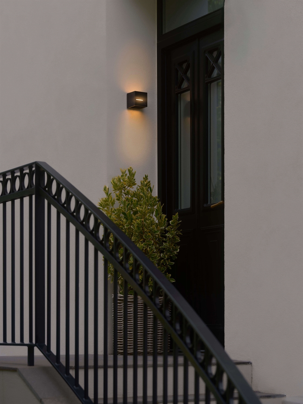 De vierkante buiten wandlamp Rivo heeft een minimalistisch design en geïntegreerde LED-lichtbron. Het prachtige indirecte licht schijnt zowel naar boven als naar beneden en ook door de voorkant van de wandlamp, wat een uitstekende keuze is voor veel entrees.
