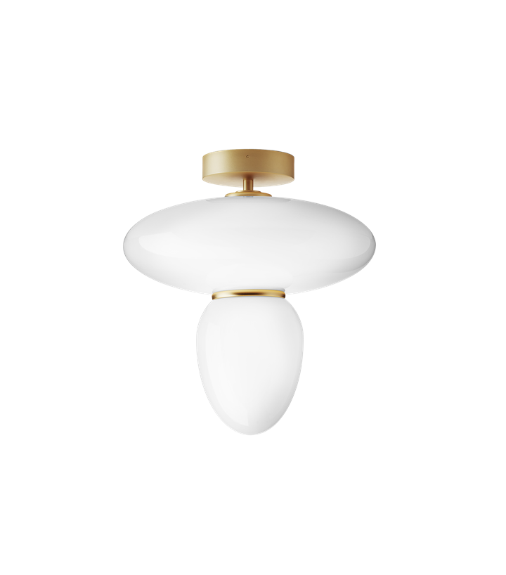 Nuura Rizzatto 42 plafondlamp, satin brass/opal – ontworpen door Paolo Rizzatto.