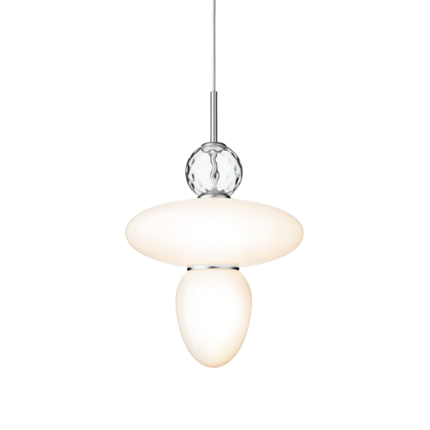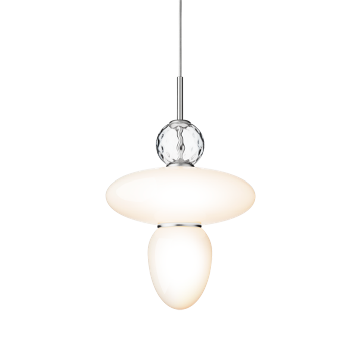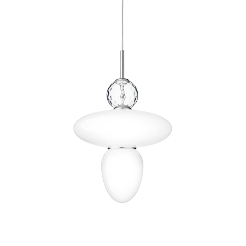 Nuura Rizzatto 43 hanglamp, satijn zilver/opaal - ontworpen door Paolo Rizzatto.