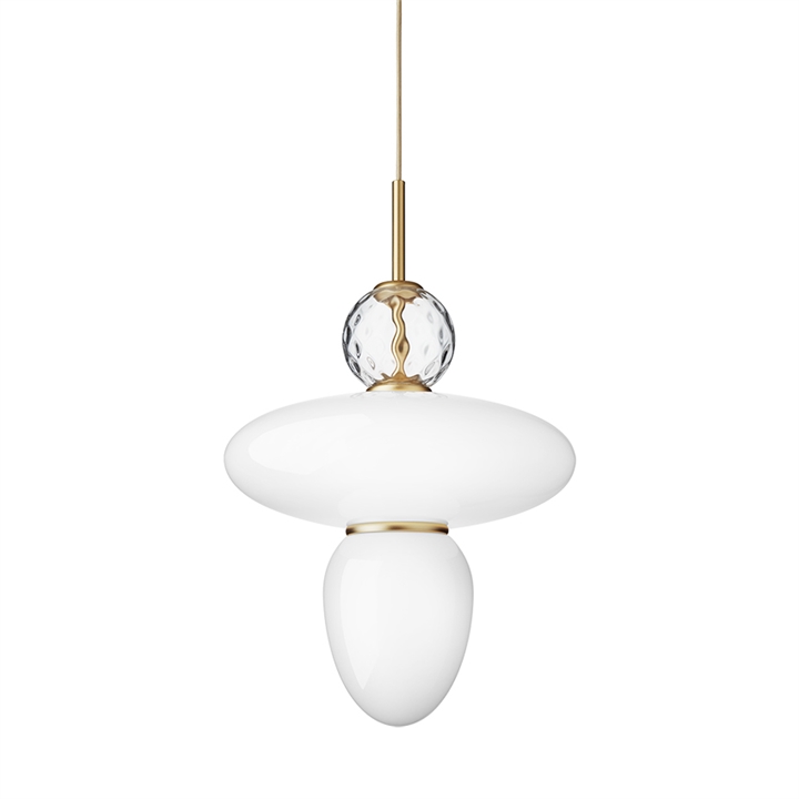 Nuura Rizzatto 43 hanglamp, satin brass/opal – ontworpen door Paolo Rizzatto.
