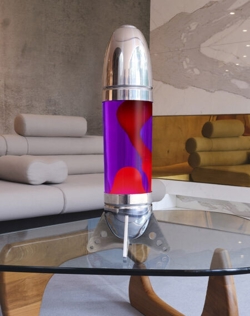 De lavalamp Rokit is een enorme raketlamp van het Britse Mathmos opgericht door Edward Craven Walker, die de lavalamp uitvond. Deze variant van de klassieke lavalampen heeft de vorm van een raket en is gemaakt van handgesponnen en lasergesneden aluminium met een gepolijste zilverkleurige afwerking. Hij is maar liefst 66 cm hoog. De fles in violet met rode lava is handmatig gevuld en gebaseerd op Mathmos’ unieke lavalamprecept, dat tot wel 2.000 branduren meegaat voordat de fles vervangen moet worden.