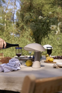 De draagbare lamp is gemakkelijk mee te nemen en kan met een IP44-classificatie zowel binnen als buiten worden gebruikt. De batterijlamp levert een warm, naar beneden gericht, verblindingsvrij licht vanuit de licht hellende lampenkap en biedt tegelijkertijd een 360° omgevend zacht schijnsel. Hij is dimbaar in drie stappen van 100%, 33% en 10% en kan respectievelijk 6 uur, 18 uur en 60 uur branden op de drie instellingen. Een volledige oplading duurt ongeveer 6 uur met de meegeleverde USB-kabel.