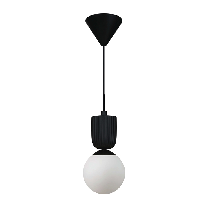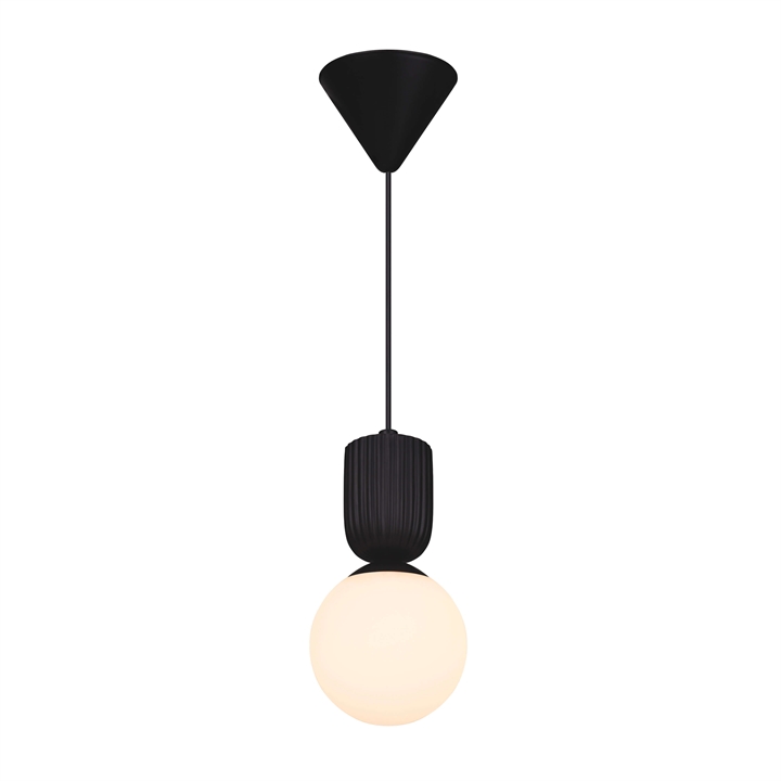 De hanglamp Sadie heeft een prachtig uiterlijk met een mix van opaalglas en geribbeld keramiek. De lamp levert een aangenaam en verblindingsvrij licht vanuit de mondgeblazen kap in opaalglas, die karakter en een levendig uiterlijk krijgt door de handmatige vervaardiging en kan variëren in uitstraling en dikte.