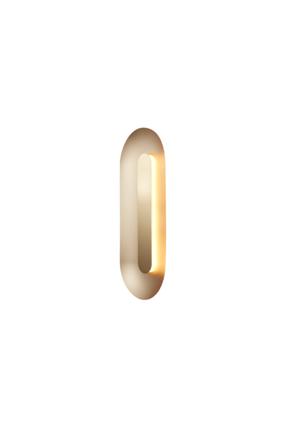 Sasi Large wandlamp creëert een prachtige decoratieve uitstraling met zijn zachte vormgeving, een harmonisch kleurenpalet en zorgvuldig geselecteerde materialen. Sasi bestaat uit een gouden, ovale aluminium kap in geborsteld messing, die de basis vormt - en een kleinere vorm in gepolijst messing is in het midden van de lamp geplaatst. De glanzende kap bedekt het geïntegreerde LED-module, dat een decoratief licht verspreidt en reflecteert. Sasi wandlamp is zowel aan als uit prachtig.