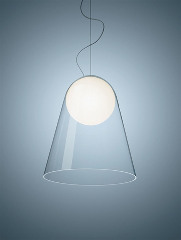 De lichtbron is echter beschermd door geblazen glas, dat er tegelijkertijd voor zorgt dat het effect van de zwevende lichtbol behouden blijft.