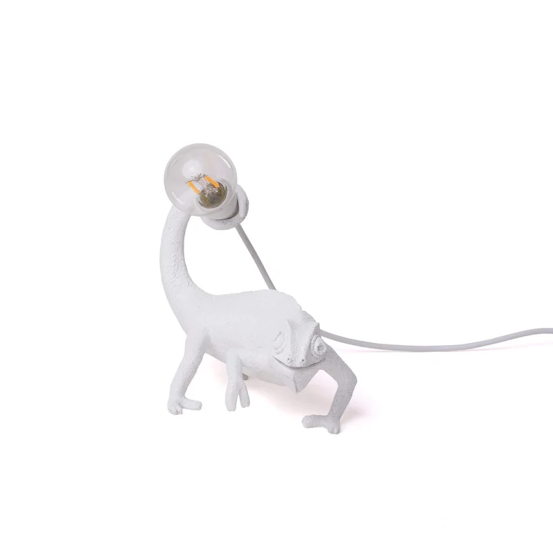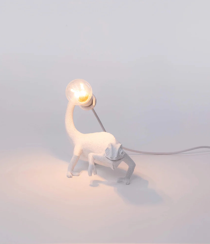 De relaxte en extraverte witte kameleon is de perfecte decoratie voor interieurs die niet bang zijn voor nieuwsgierige blikken. Deze lamp is gemaakt van resin en is bedoeld voor gebruik binnenshuis.