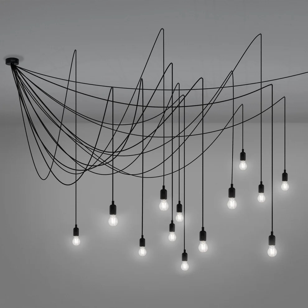Een tentakelachtige plafondlamp, een lichtnet met eindeloze combinatiemogelijkheden. 14 lange, hangende armen voor grote en flexibele ruimtes.