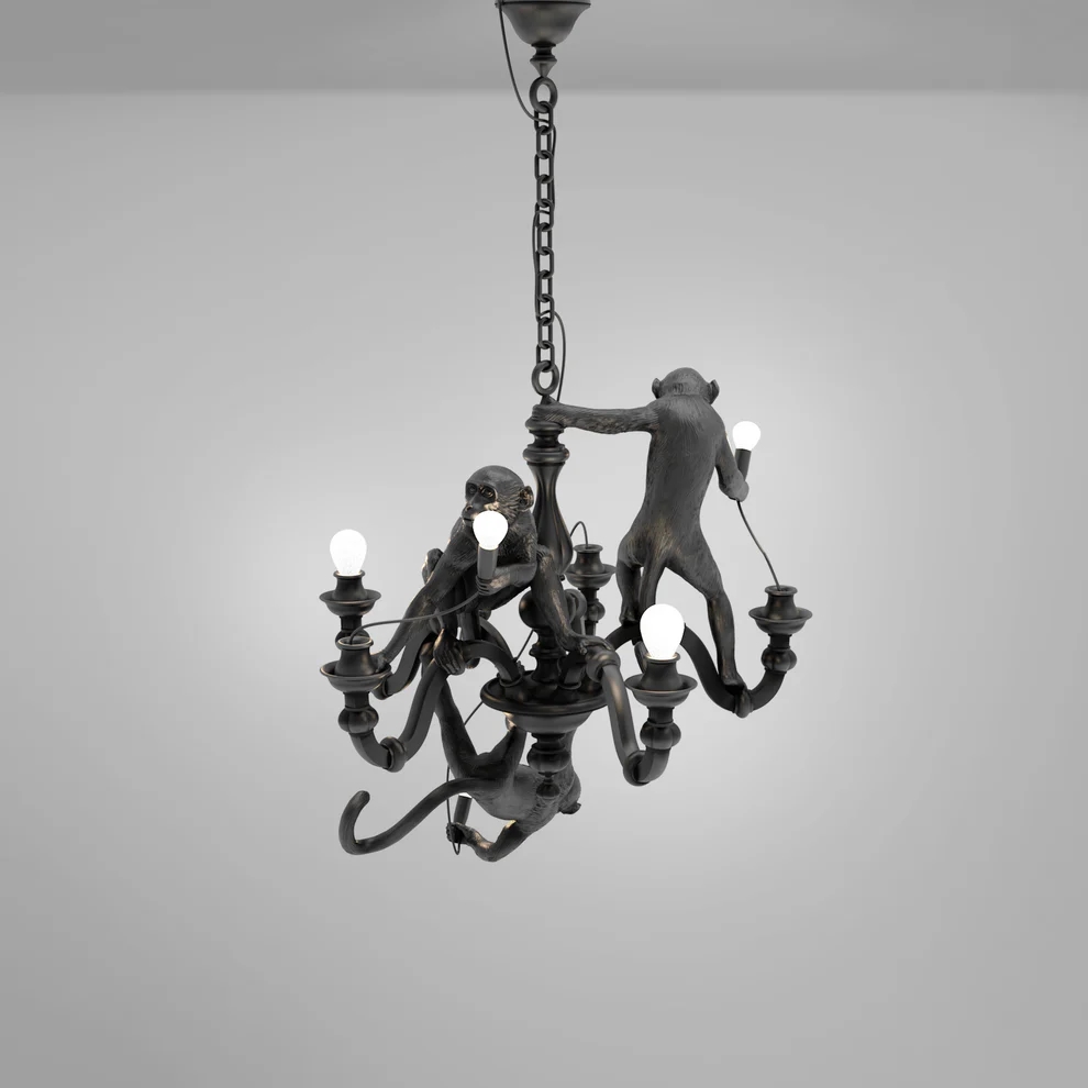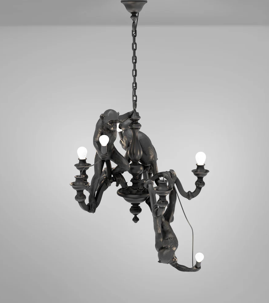 Seletti Monkey kroonluchter, zwart – ontworpen door Marcantonio in 2019