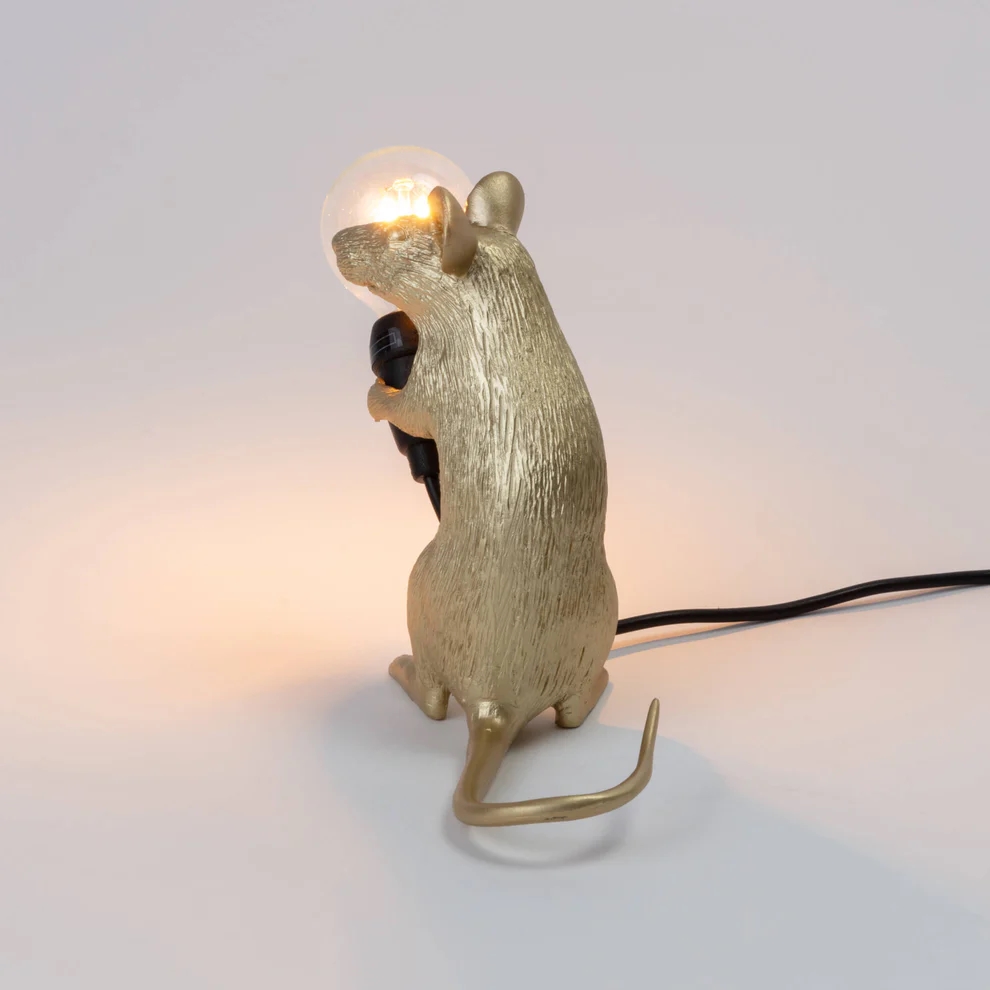 Seletti Mouse lamp - Mac Gold sitting m/USB kabel – ontworpen door Marcantonio in 2021