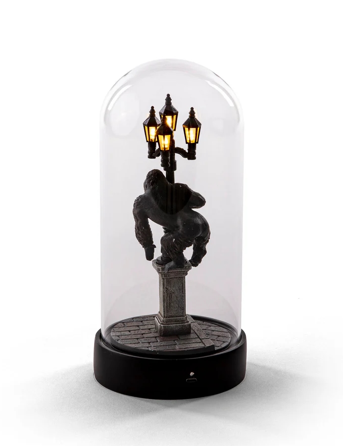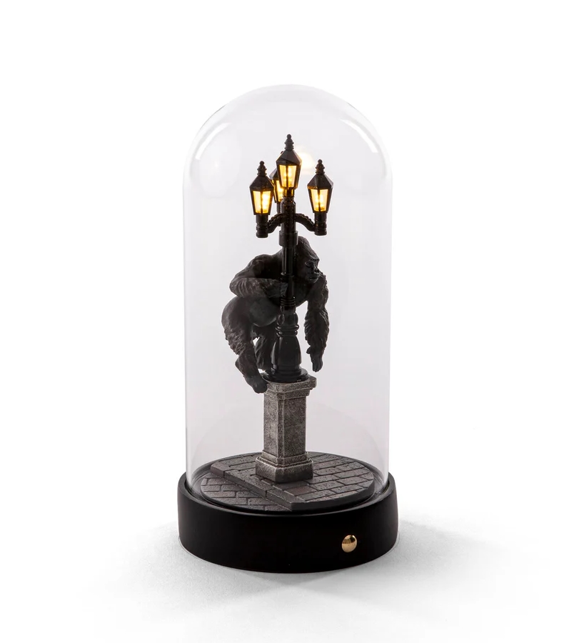 De scène lijkt zo uit een film te komen en is prachtig geplaatst onder een glazen stolp. Een raadselachtige lamp met een verhaal dat wacht om onthuld te worden. De batterijlamp is dimbaar, draagbaar en oplaadbaar.