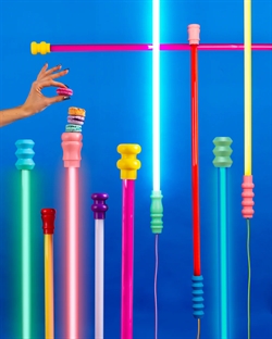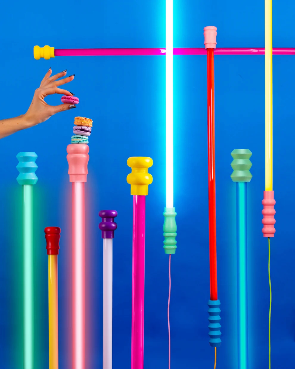 Superlinea is een grafisch en kleurrijk designstatement dat de ruimte pit en persoonlijkheid geeft. Met zijn eenvoudige, lineaire vormtaal en heldere kleuren werkt de lamp zowel als lichtbron als decoratief element in het interieur.
