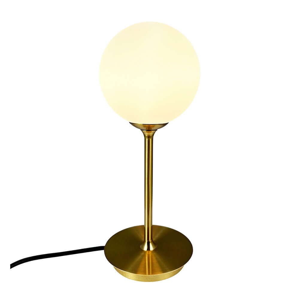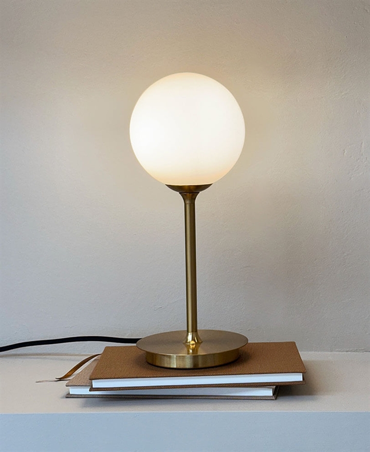 Sia tafellamp is Deens design met een verfijnde en tijdloze uitstraling met een basis van messing en een witte glazen kap. Met de combinatie van klassiek messing en modern wit glas past de lamp goed in veel interieurs en kan met zijn zachte en aangename licht bijvoorbeeld op een plank in de woonkamer of op het nachtkastje in de slaapkamer worden geplaatst.