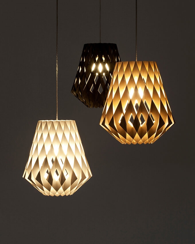 De hele Signature-serie bestaat uit opvallende hanglampen, die met hun kappen een uniek schaduwspel creëren door de structuur. De Signature-serie is verkrijgbaar in verschillende modellen en maten in de kleuren berk, wit, zwart en bruin.